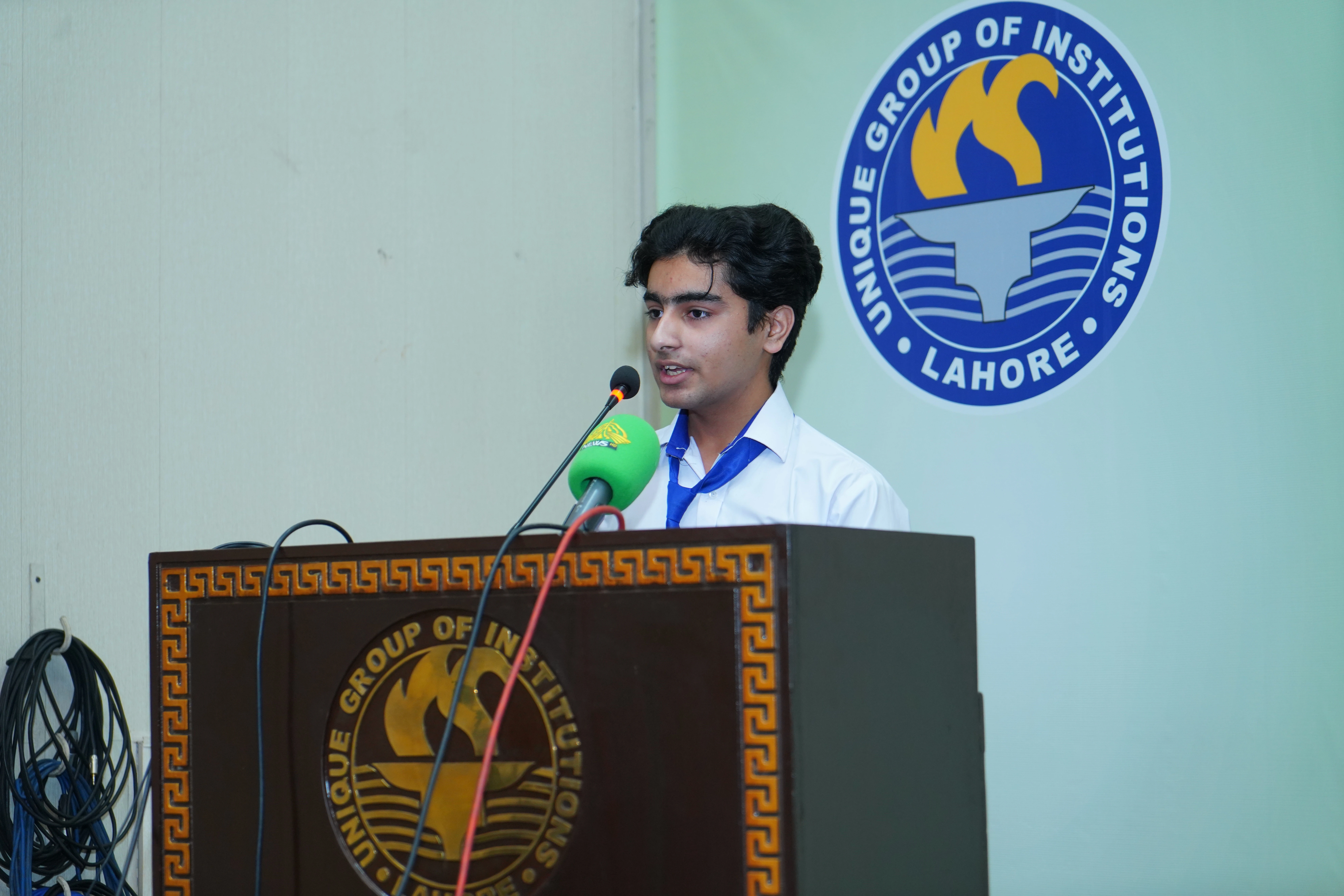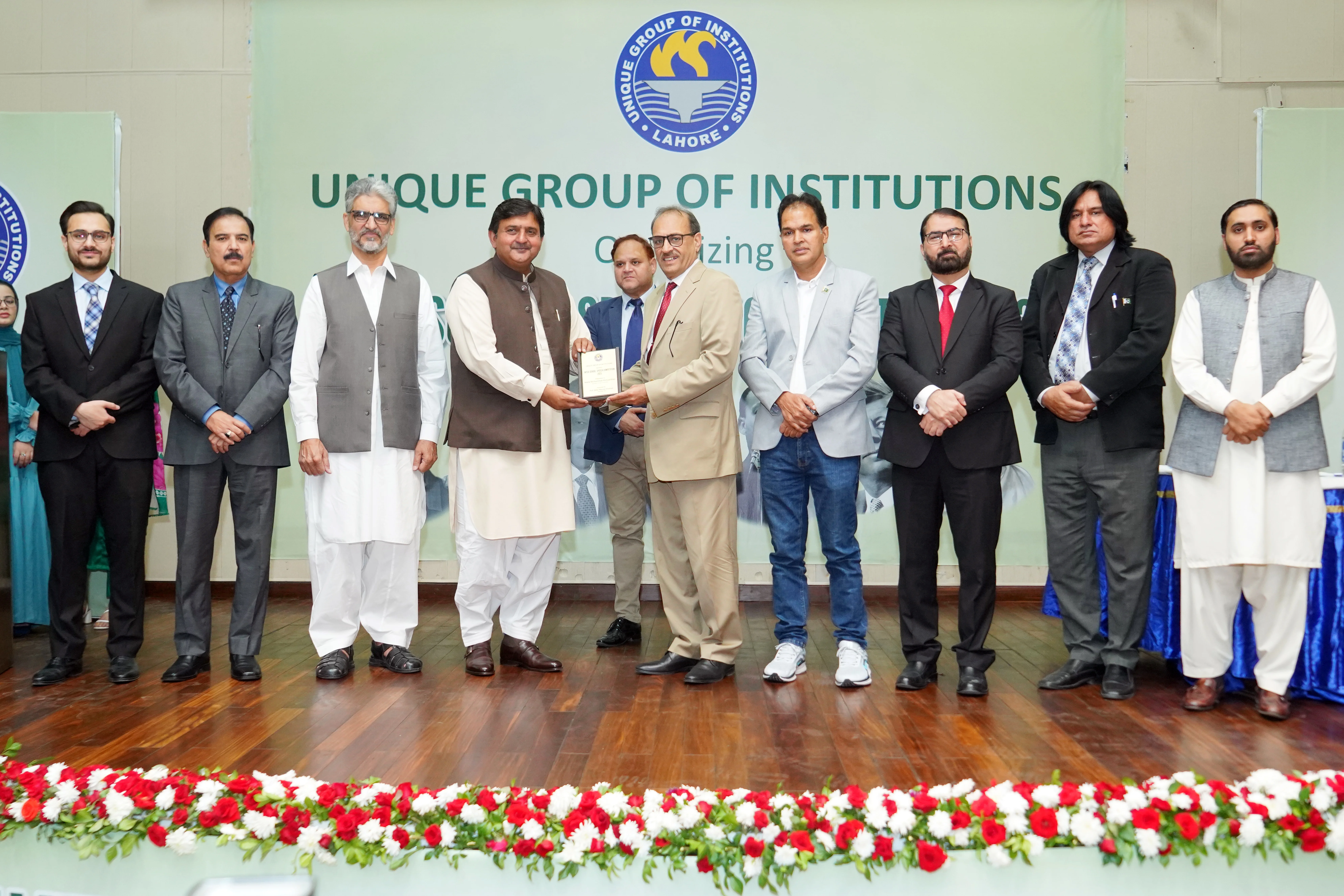 The Unique Group of Institutions organized the Inter School Speech Competition 2025 at the Dr. Nisar Ahmad Rana Auditorium on November 06, 2025. The ceremony commenced with the seating of guests and a formal welcome by the compares, followed by the arrival of the Chief Guest Speaker, His Excellency Malik Muhammad Ahmad Khan, Punjab Assembly, whose presence added grace to the occasion. The event began with the recitation of the Holy Quran by Abdullah Yousaf and Naat-e-Rasool (SAAW) by Fatima Muhammad, The National Anthem and “Lab Pe Aati Hai Dua” added a patriotic and heartfelt beginning to the event.