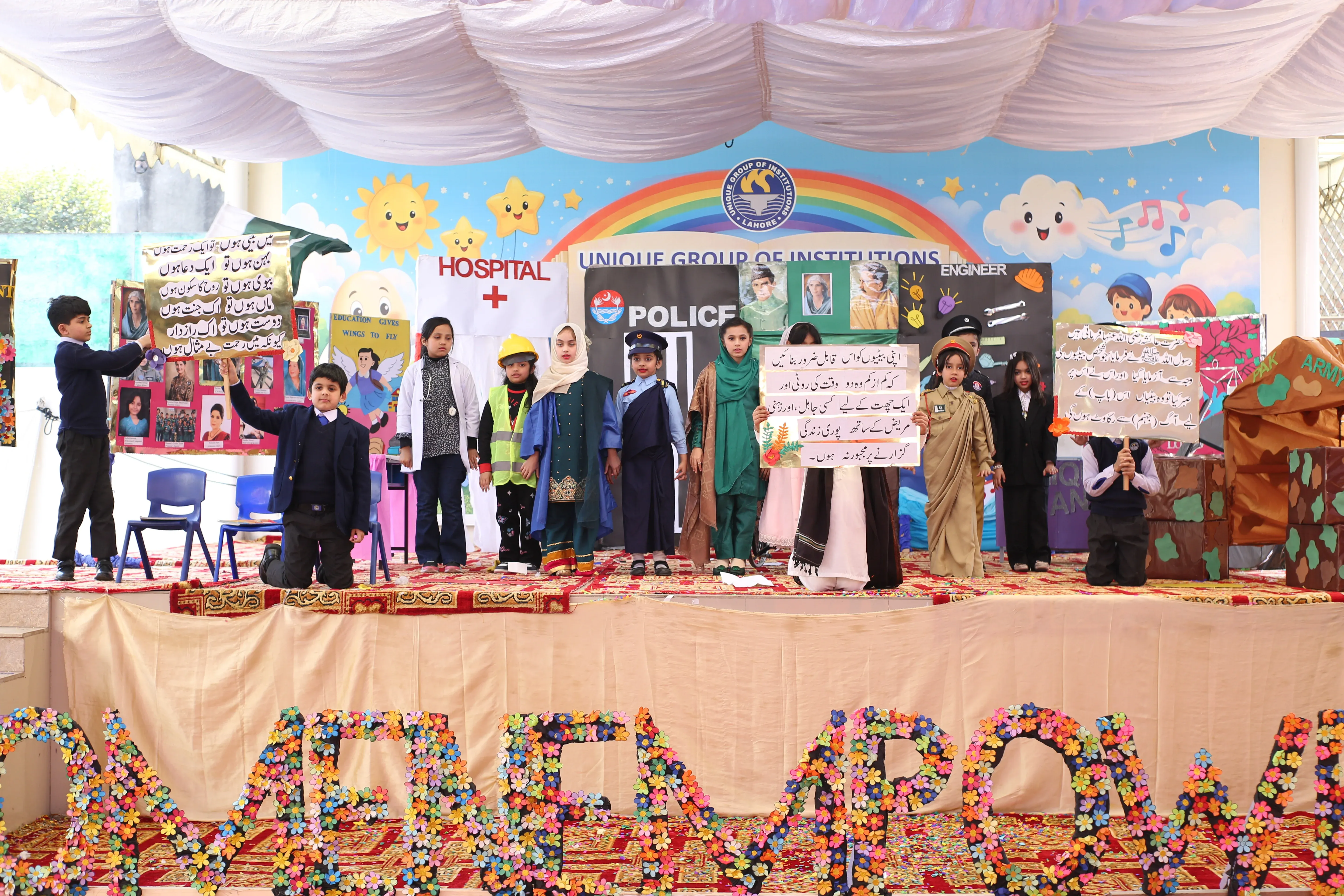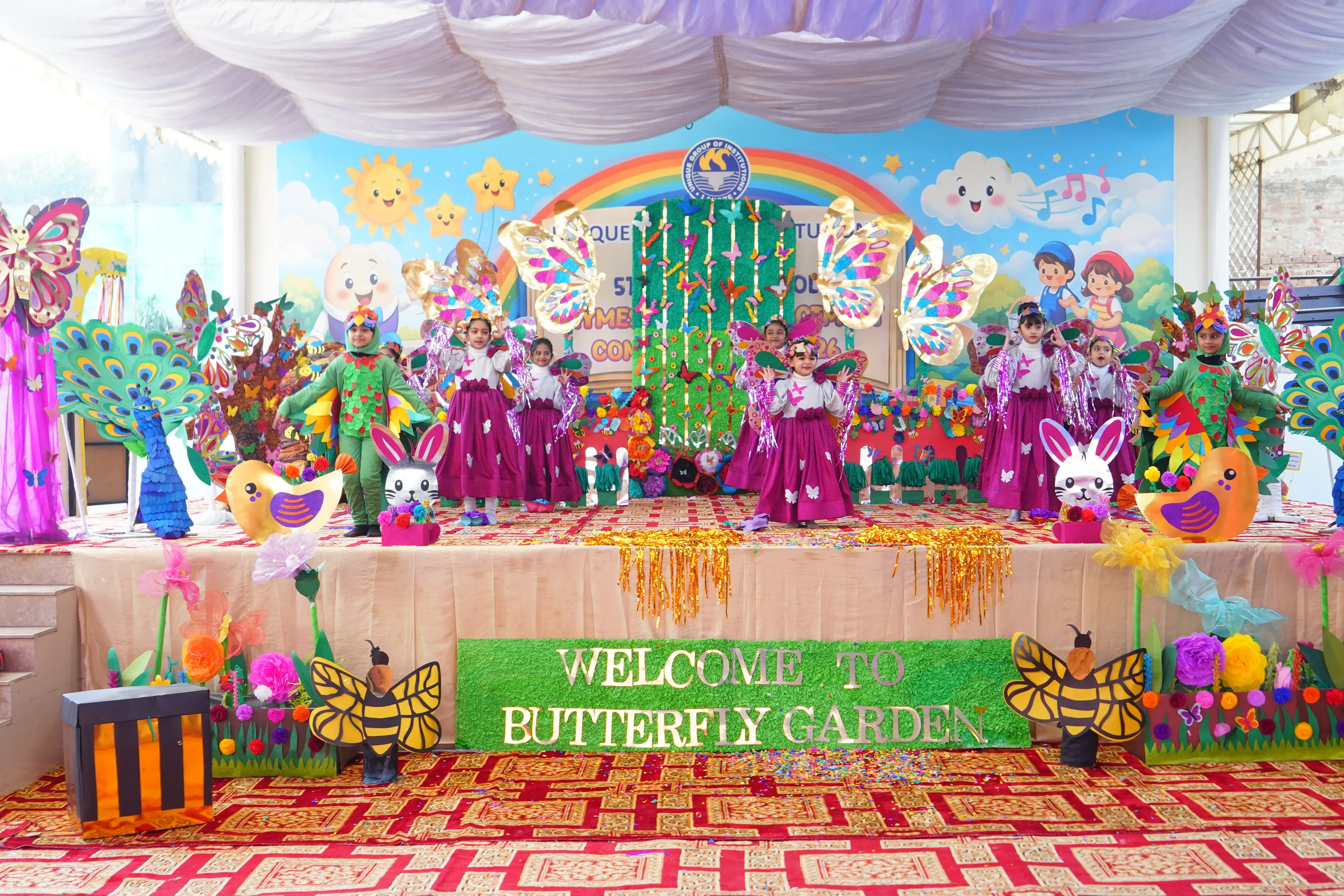 The Unique Group of Institutions organized the Rhymes and Story Enactment Competition 2026 to encourage creativity and confident expression among students. The event was attended by distinguished guests including Mr. Muhammad Iqbal Khan, Provincial Minister of Law, Punjab; Ms. Nimra Mehra, Renowned Singer; Mr. Tariq Tafu, Renowned Singer; Mr. Haseeb Pasha, Renowned Drama Actor (famous for his role in Ainak Wala Jin); Prof. Nasir Bashir; and Prof. Rahela Ashraf.